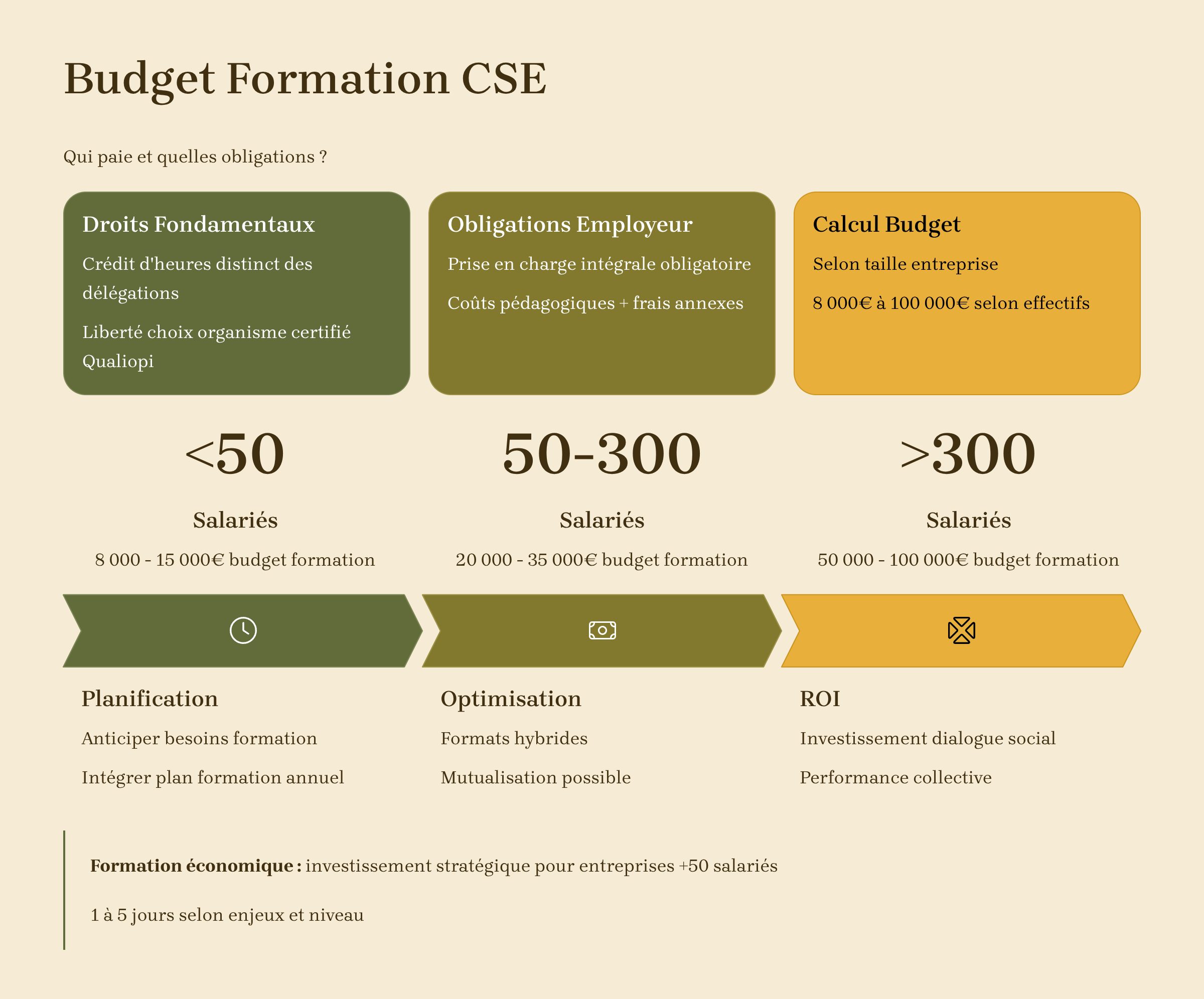Une planification rigoureuse du budget formation CSE permet d'éviter les surprises et d'optimiser les coûts. L'employeur a tout intérêt à anticiper ces dépenses dès la mise en place du CSE, en intégrant les formations dans son plan de formation annuel.